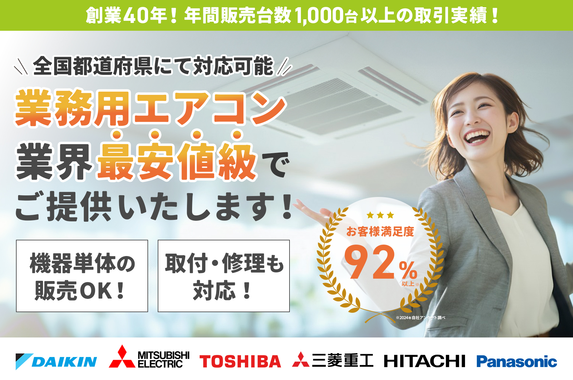 セイコーでは、年間1,000台以上の業務用エアコンの取り扱い実績と強力なメーカー交渉力を活かし、お客様の最適な導入や見直しを全面的にサポートしています。「今使っている設備をもっと効率よくしたい」「交換するべきかどうか相談したい」とお考えの方は、ぜひお気軽にお問い合わせください!